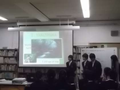 4・全員が自分が作成したパワーポイントを使いながら英語で発表する。