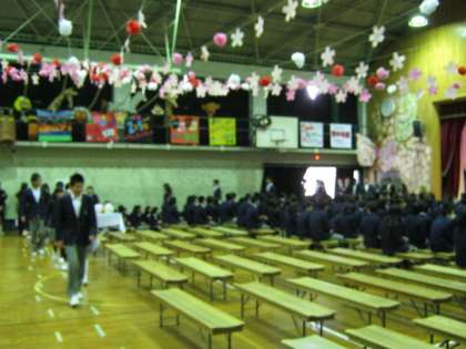 3年生は,担任の先生の紹介メッセージとクラスの入場曲に乗って少し照れくさそうに入場しました。