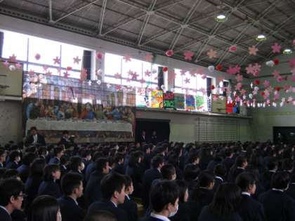 桂中にとって生徒全員がそろう最後の行事となる「3年生を送る会」が,3・4限を使って開かれています。