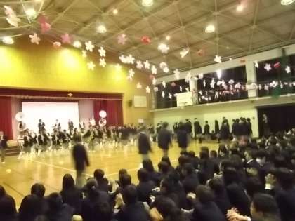 新入生入場では吹奏楽部がドリル演奏,2・3年生が拍手でお迎えする中でスタートしました。