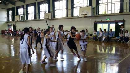 創部6年目にして過去最強チームになってきた女子バスケットボール部,中学生らしく元気で活気のある日ごろの成果もあって,68−11で快勝しました。