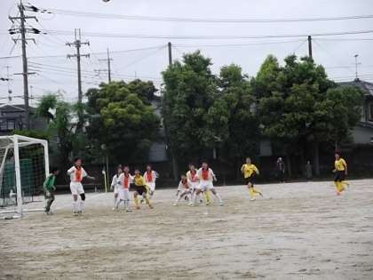 5/4(休),本校グランドにおいてサッカー春季大会4回戦が行われ,優勝候補の一角本校サッカー部は九条中学校に2−1で勝利,ベスト8進出が決定しました。