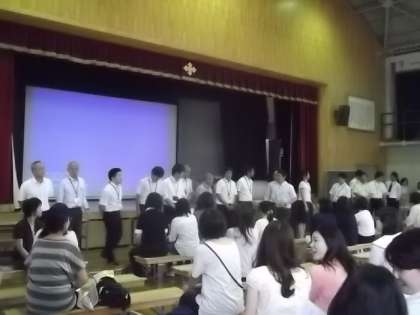 午後2時からは部活動保護者会が行われました。まず昨夏の全校道徳で使った部活動のVTRをご覧いただいたのち,校長から部活動についての話,顧問紹介を行いました。
