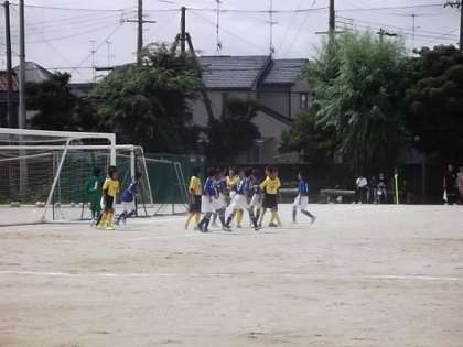 昨夏選手権大会優勝で2連覇を目指すサッカー部の初戦はつい先ほど終了し,難しい初戦を危なげなく3−0で上京中学校に勝利しました。