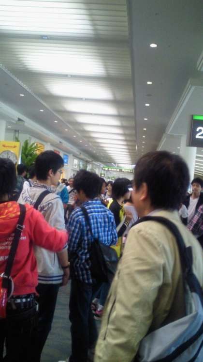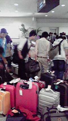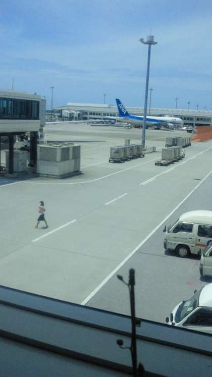 予定通り神戸空港発も関空発も那覇空港に到着しました。現地の天候は天気予報に反して今のところ「晴れ」、フライトも大きな揺れもなく気分の悪くなった子どもたちもいません。「全員元気です。」 現在13:15現在、関空隊(本隊)が預けた荷物を受け取っているそうです。すでに神戸空港隊はターミナル出口で待機しています。
