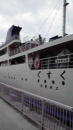 17時出航予定のフェリー「ぐすく」です。約30分の船旅ののち、伊江島に到着予定です。