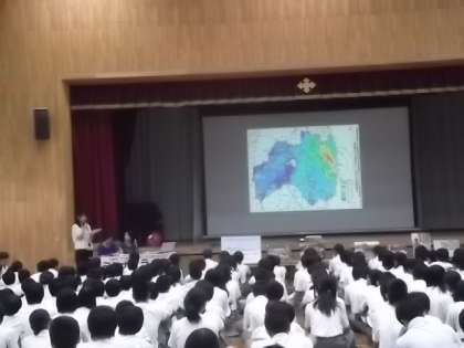 いまだに元の生活に戻れていない福島の子どもたちを支援するために立ち上がったプロジェクトです。未来のすべての子どもたちのために…。という目的をもった団体さまと桂中学校がコラボして,東北の支援活動を始めることにしました。先週の金曜日は3年生の代表生徒とのミーティング,今日は3年生全員に東北のこと,震災のこと,福島の現状などを3名の方(みなさん小さなお子さんのお母さん)にお話しいただきました。