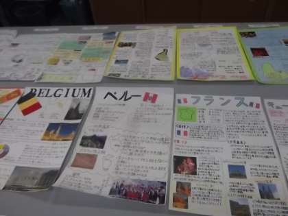 3号館2階東側の第一理科室では,社会科夏休みの課題作品の展示が行われています。(さ)