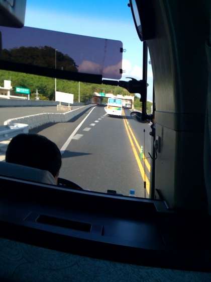 ひめゆりの塔をでて、宿舎に向かってバスは走っています。