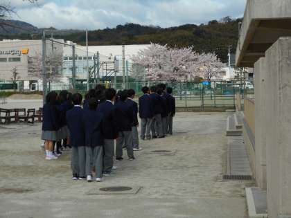 1限目、1年生は校舎案内と学級写真撮影でした。