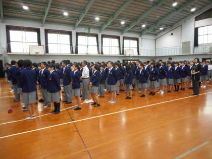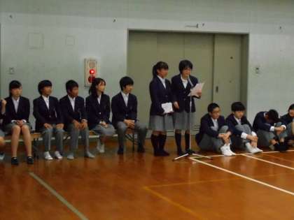 校歌斉唱の後、生徒会本部よりはじめの言葉が述べられ