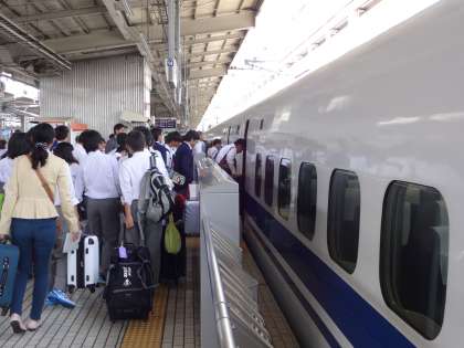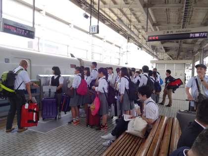 9:56,本校3年生の修学旅行団は欠席者もなく,全員が無事に京都駅を出発しました。これから3日間,思い出づくりとたくさんの良き経験をし,元気に帰ってきてください。