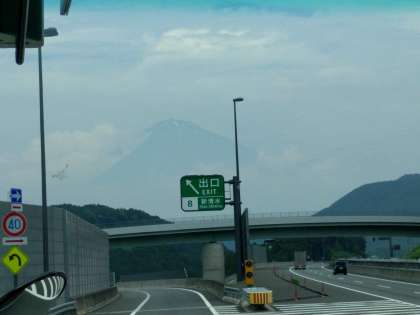 ラフティング組のバスの窓から富士山が見えてきました。