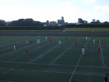 9月4日(土)スタンドにいるだけでも耐え難い酷暑の中、左京区宝ヶ池球技場でサッカー部のUー15選手権大会の準々決勝(VS宇治中学校)が行われました。試合は前後半とも桂中が全体的に押し気味で進みましたが、後半速攻で2点を奪われ1−3で惜敗しました。3年生にとっては本当に最期の一戦となりましたが、試合終了まであきらめずに声を出して健闘した選手や応援に回った部員に拍手を送りたいと思います。(写真は白ユニフォームが桂中学校です。)
