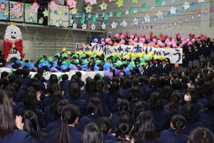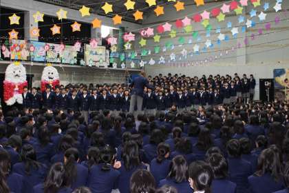 続いて2年生からの出し物。寸劇の後、クラスごとに制作した