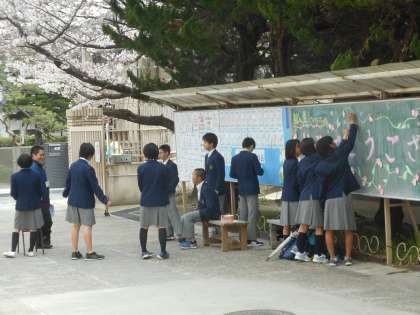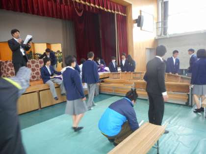明日挙行される入学式の準備を、教職員と生徒たちで行いました。