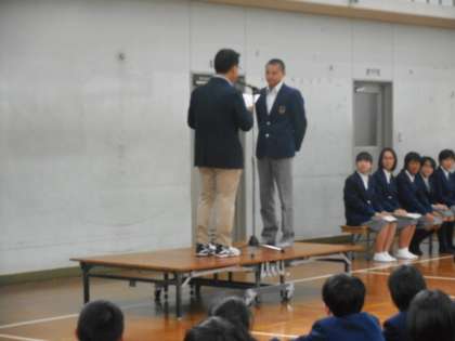 認証書が授与されました。校長から激励の言葉を送り、最後に本部役