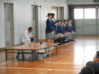 生徒会本部役員による司会進行の中、校歌斉唱・はじめの言葉のあと