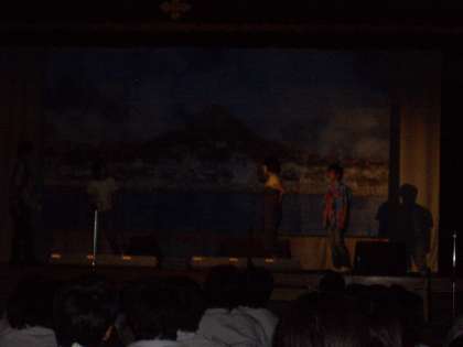 10/6(水)展示鑑賞と共に1・2年生グループと1組・3年生グループに分かれて舞台発表が行われました。残念ながら体育館内が暗くて写真撮影が困難を極め、ほとんど写真データがありませんでした。その中で、何とか3枚だけアップします。