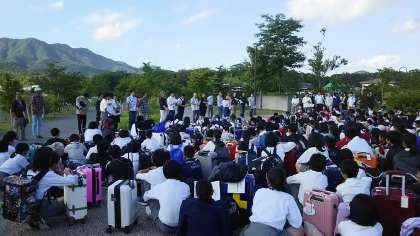 少し肌寒いですが、晴天に恵まれました。ぺンションのオーナーさんとのドキドキの顔合わせです。