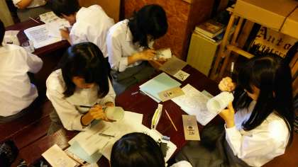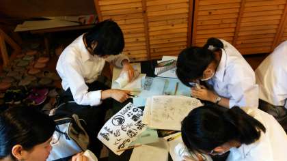 昨日,体験活動でお届けできなかったサンドブラストクラフト活動の様子です。みんな,真剣に取り組んでいます。いい作品に仕上がったのでしょうか?