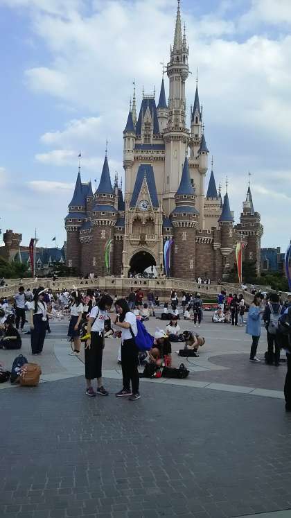 シンデレラ城前で仲良く自撮りしています。