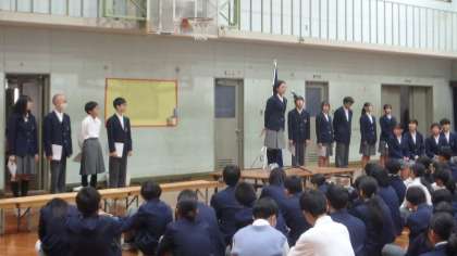 本日6時間目の学活、生徒会本部役員の引き継ぎ式が行われました。