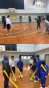 1組 〜桂中学校の先生たちとフロアホッケー交流会〜