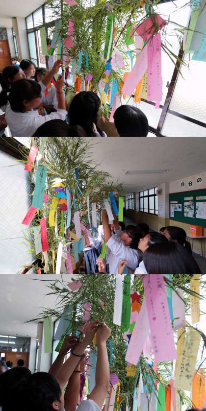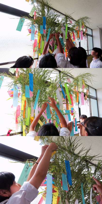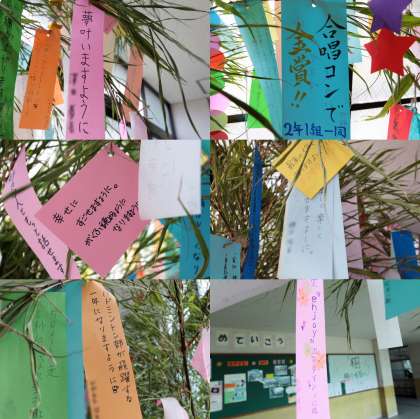 今夜は「七夕」です。笹に「自分の願い」を書いた短冊を飾りました。