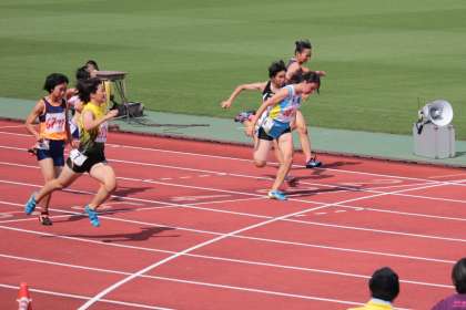 一日目、3年女子100m走で、午前に行われた予選を突破し、午後からの決勝に進出しました。