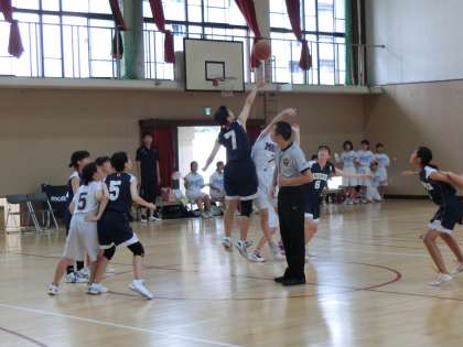 バスケットボール部夏季大会が9:00〜 上京中学校で行われました。相手は秋季大会ダブルスコアで敗れた強豪蜂ヶ岡中学校。なんとかリベンジを!と頑張ってきたのですが、★43—68 と残念ながら敗退しました。やはり実力者!! 試合運びも試合態度も素晴らしかったですね。練習での頑張り、試合での善戦の様子は新チームを引き継ぐ1,2年生の目にはっきりと焼き付いています。そして、そのそのバトンをしっかりと受け取り、より素晴らしいチームを作ってくれることでしょう。お疲れ様でした。3年生は悔いのない試合ができたと思いますので、気持ちを切り替えて、この夏は自らの進路希望達成に向けて全力で取り組んでください。