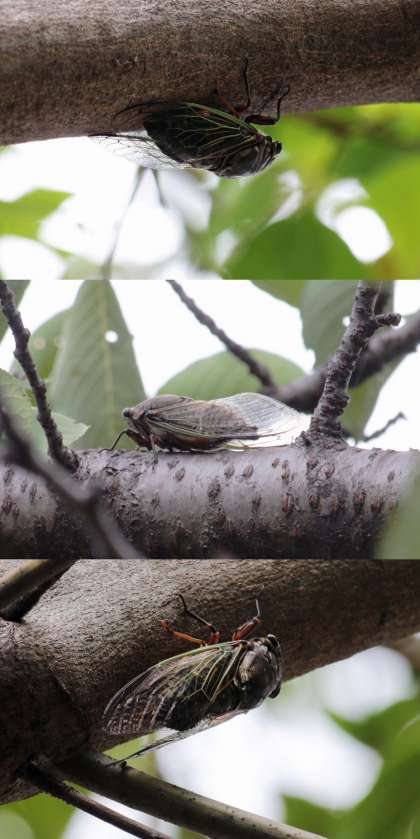 朝早くから鳴いています。午後になり、部活動が始まる頃には鳴き止むようです。
