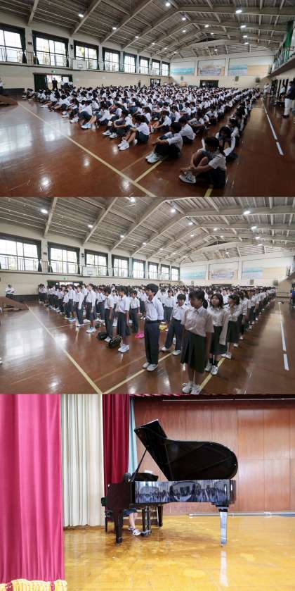 1限・2限が教科授業、3限が体育館で全校集会、4限が大掃除と学活がありました。