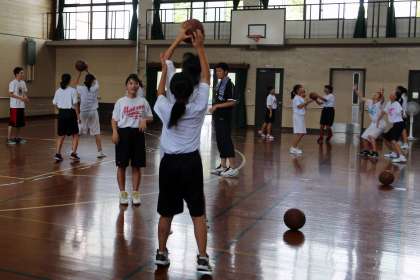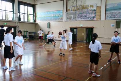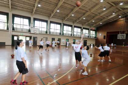 昼前、体育館では女子バスケットボール部が新体制での練習試合を前に調整をしていました。
