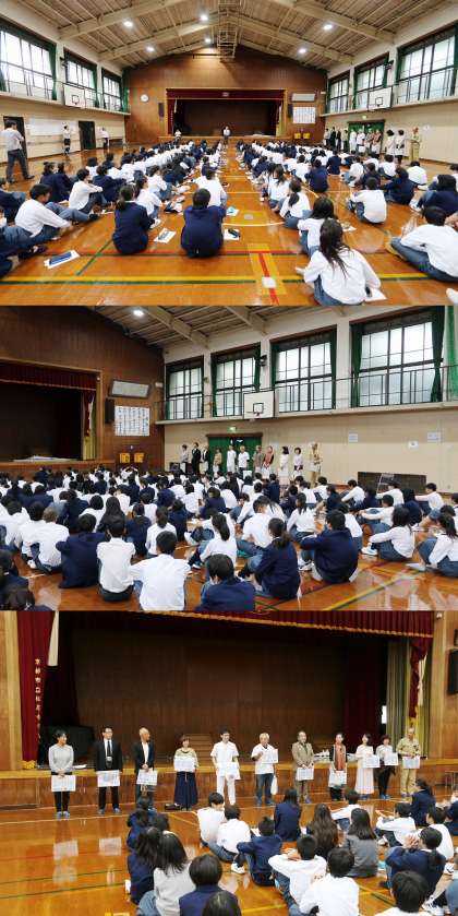 6限目、1年生は体育館で「松尾中ワーキング・ビジョン・プログラム」がありました。