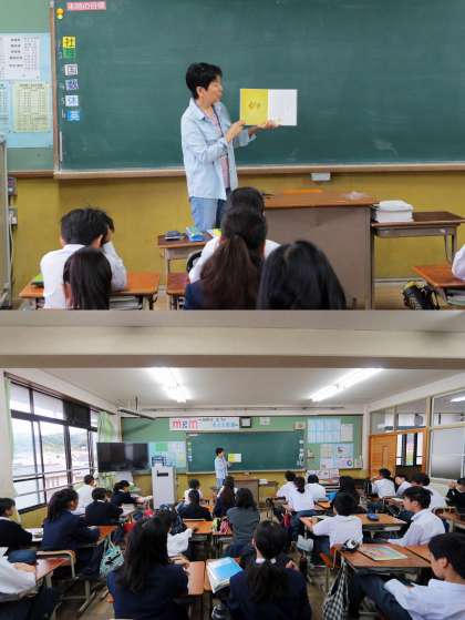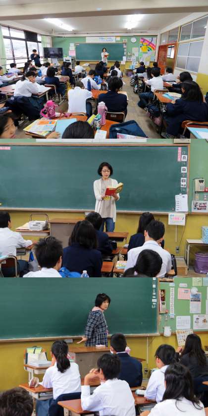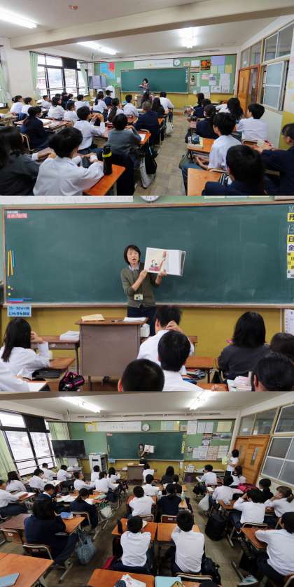 朝読書の時間に、地域のサークルの方が「読み聞かせ」に来て頂いています。