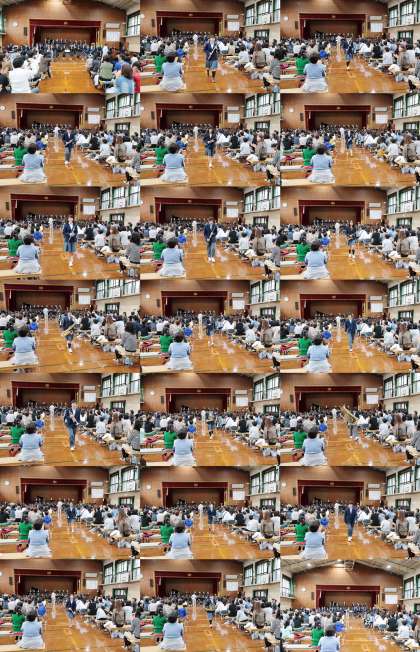 1・2年生が演奏する「ピーチ」の曲で、3年生が入場しました。