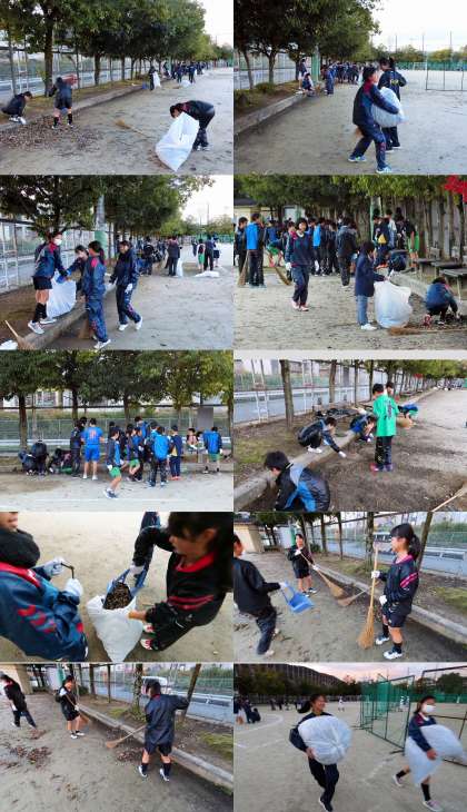 昨年まで、定期テスト終了日の午後に「落葉拾い大作戦」として、各部活動が一斉に校内の清掃を行ってきました。