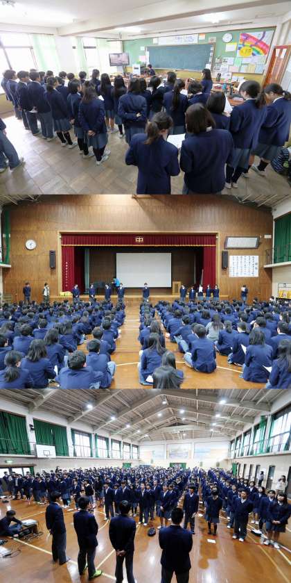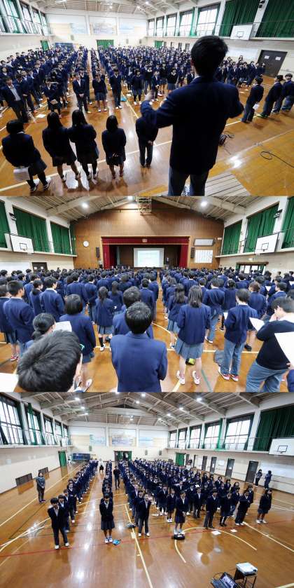 始め教室と体育館で分かれて練習をした後、体育館で合同練習をしました。