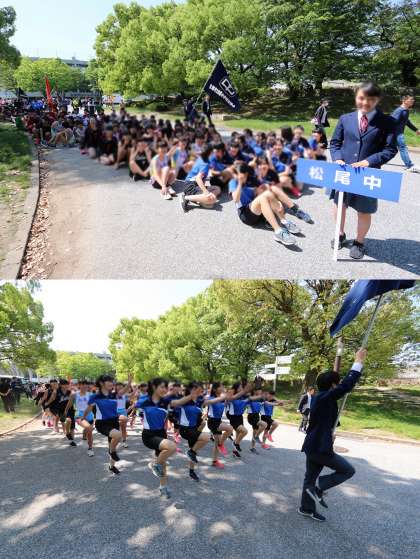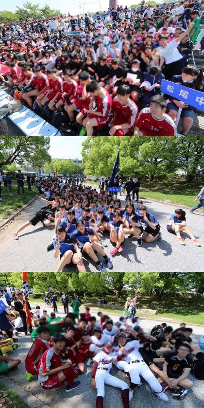 西京極総合運動公園陸上競技場において、晴天のもと「第60回京都市中学校春季総合体育大会開会式」が開催されました。