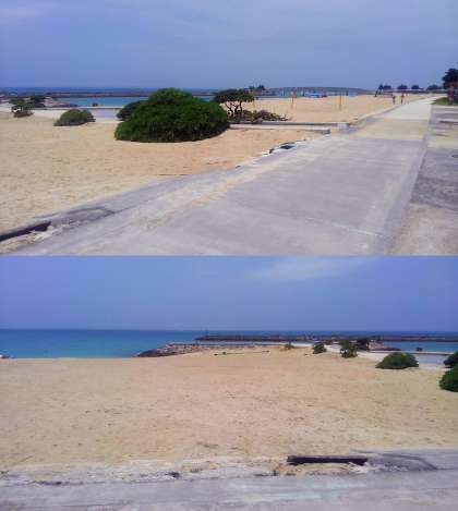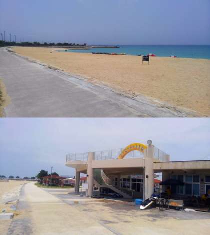 離村式、そしてマリン体験を行う美々ビーチの様子です。