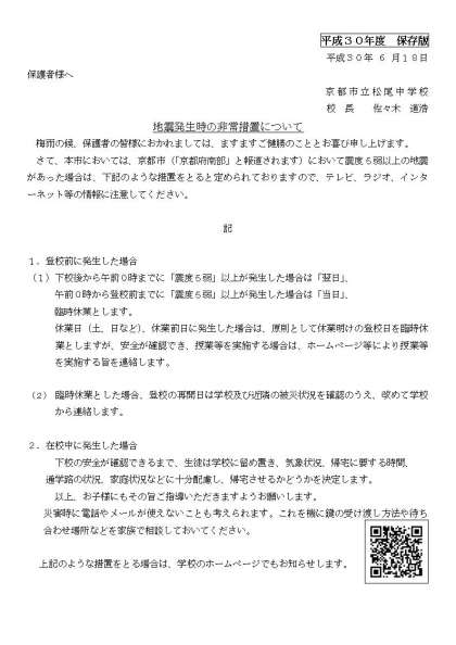 今後大きな余震が起こらなければ、明日は平常通り授業を行う予定です。
