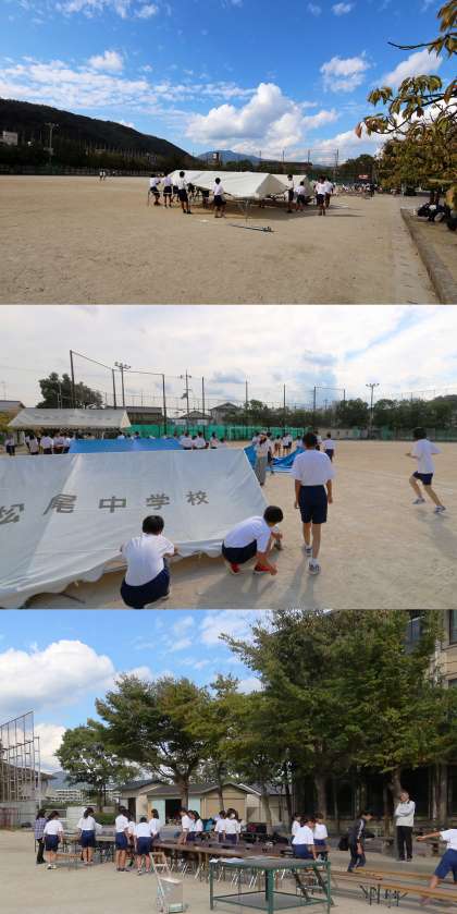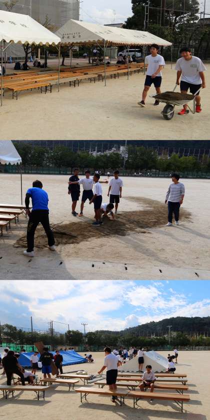 係にあたっている各委員会・部活動の人たちが、手際よく準備をしてくれました。テント張り、椅子並べ、グラウンド整備、ライン引き、用具準備などを行いました。