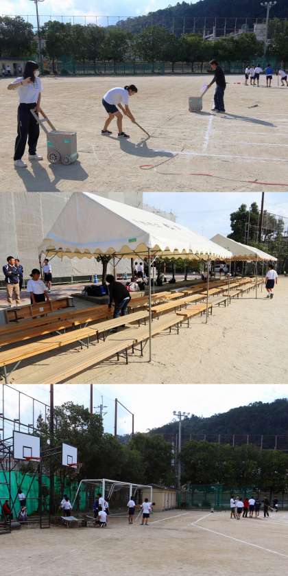 明日は「体育祭」の予定です。午後から前日準備を行いました。
