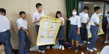 令和元年度最初のポスターセッションを行いました。今回は,5月に行われました修学旅行がテーマです。緊張しながらも一所懸命,二年生に説明していました。