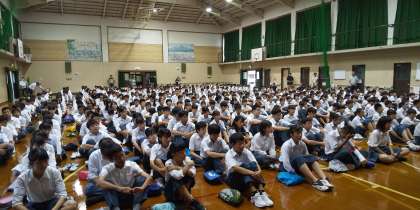 時間通りに集まり,しっかり話を聞けました。500人以上の人間が集まると暑さも一段と厳しくなります。行事の多い二学期です。盛り上げていって欲しいです。新チームの部活動にも期待しています。
