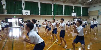 体育祭で行う,ソーラン節の練習風景です。(10月16日体育祭)かけ声も大きくなってきました。