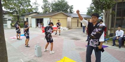 放課後も練習に励むリーダーたちです。台風一過,秋空に期待!