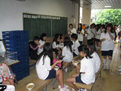 吹奏楽部の有志のみんなにお手伝いしてもらった、「とびきり美味しいカレー」をいただきました。たくさん作っていただいたので、おかわり自由でしたね。○○先生は、大盛り3杯、ペロッとたいらげていました! さすがです!! おなか大丈夫ですか?