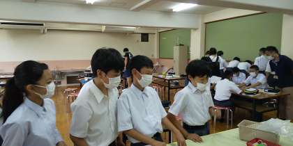 例年は、異動された先生も含めて中学校1年生授業参観をしていましたが、今年度は、嵐山東小、松尾小におられる担任の先生4人にお越しいただき様子を見ていただきました。